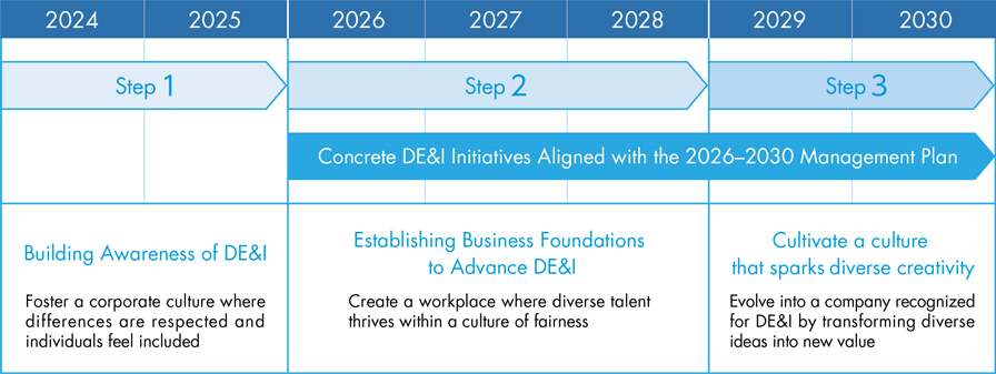 As a first step, we are prioritizing the empowerment of women, setting both quantitative goals and qualitative action plans to guide and implement targeted measures in a phased manner.