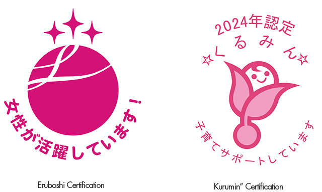 The Japanese government publicly discloses the progress of corporate efforts to support women's careers and improve the working environment through two major certifications. Kurumin: Awarded to companies that actively support child-rearing. Eruboshi: Given to companies that excel in promoting women's participation and advancement in the workplace.