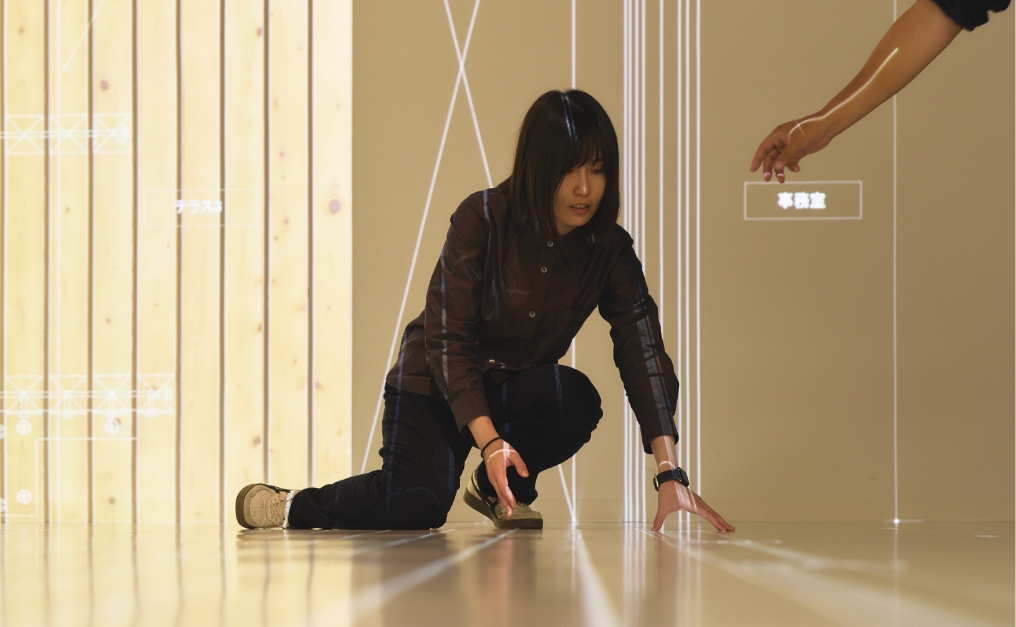 所属するDDLは、「建築とテクノロジーのかけ算によって生み出す新しい価値」をテーマに、コンピューターを中心としたICTを駆使したリサーチおよびデザインを行うチームです。具体的には、人々により豊かな体験を届けることを目指し、デジタル技術を活用した体験設計やツール開発、映像制作、システム構築などデジタル技術を用いた実装を幅広く担当しています。空間体験をデザインするという建築的視点を軸に、「体験づくり」を建築の領域から探求しています。私の担当の一つに、日建設計東京ビル内に設置された「XR STUDIO」があります。XR STUDIOは、現実と仮想の「あいだ」の空間を体験できるスタジオです。建築設計の検討だけでなく実験的空間としての役割もあり、社内外へ日建設計のデジタル技術を発信し、プラスαの価値を提供できるところにやりがいを感じています。