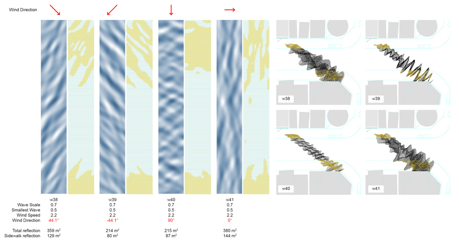 もうひとつの代表例は、水面の情報を建築のファサードに転化した東京・銀座の「i liv(アイリブ)」です。「穏やかな水面のようなファサードにしたい」という意匠設計者からの要望を受け、DDLは水面に生じる波の形状と風速の関係を解析しました。そして「穏やか」な状態とは、どのような形状なのかを徹底分析。そして、ガラスを積層させ等高線のような地形を建築の表面につくることで水面を表現するという解を導き出しました。