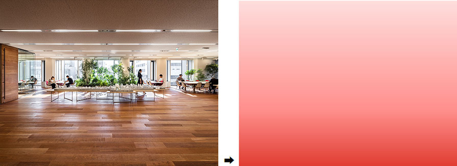 大阪オフィス8階を「OIRONAOSHI展」期間中は、普段のオフィス空間をスペースデザイングループがお色直し。いつもとは一味違う滞在をお楽しみください。