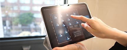 <IoTデバイス等で室内環境を確認し自ら操作する様子>