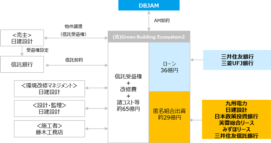 本件では、ゼノベプロジェクト第1号案件の参画者であるDBJ、DBJAM、日建設計に加え、民間金融機関をはじめとしたレンダー/投資家が参画することで、環境改修を「コスト」ではなく「投資」として成立させる市場形成を後押しし、ゼノベのさらなる発展を推進してまいります。なお、DBJは、本件が日建設計や参画各社との連携を通じて不動産投資市場における環境改修投資の活性化に寄与し、不動産業界のネットゼロ実現に貢献する取り組みであるとして、「特定投資業務(注1)」の一類型である「グリーン投資促進ファンド(注2)」を活用し、本件に資金を供給しました。