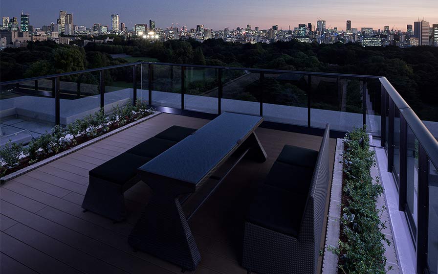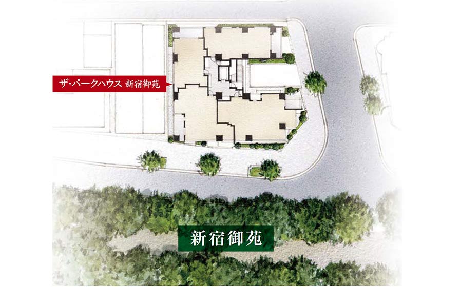 広大な新宿御苑に面しており、南向きの住戸からはその緑を一望できる、希少な立地のに位置する分譲集合住宅である。 「新宿御苑に住まう」をコンセプトとして、立地の特性から、新宿御苑を「取り込む」「感じる」「溶け込む」という3つのキーワードを抽出し、環境を最大限享受しつつ景観に溶け込むことができる住宅であることを目標とした。バルコニー配置の調整やガラス主体のファサード、バーチカルブラインドの実装等の計画によって、この地域にとっても街並みを望ましい形へと導いていくことのできる建築となった。